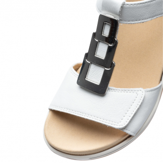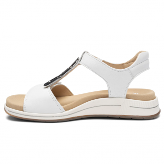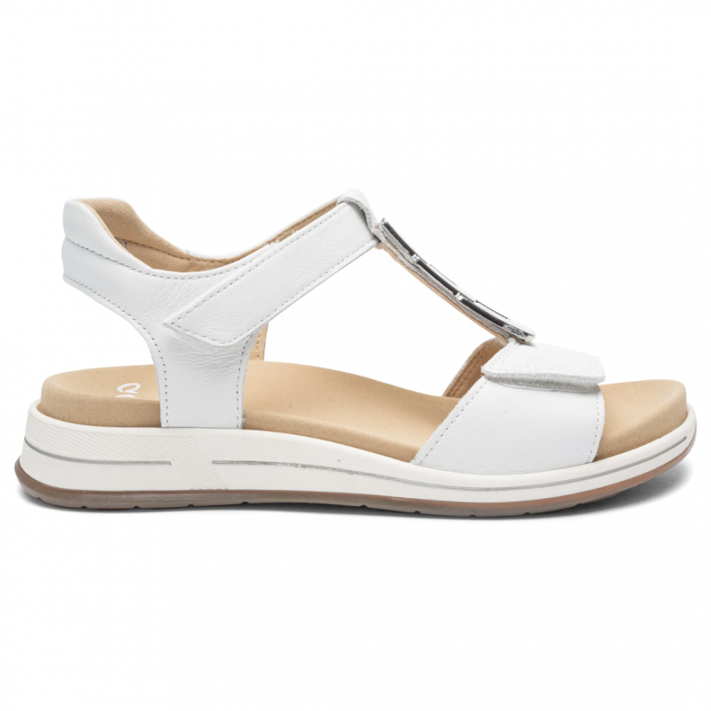 Tendance et polyvalente pour les journées chaudes de l'année : c'est la sandale d'ara. Le matériau supérieur est fabriqué en cuir. Une qualité supérieure et un grand confort de port sont ainsi garantis. Afin que les pieds larges aient suffisamment d'espace pour bouger naturellement, la chaussure offre une coupe généreuse qui ne serre pas. La semelle intérieure rembourrée est recouverte d'un textile doux. Associée à la technologie innovante HighSoft, elle garantit une marche amortie et sans fatigue. Les pierres précieuses sont un véritable point fort. Combinées avec un pantalon léger et un haut assorti, ces chaussures polyvalentes et aérées sont superbement mises en valeur.